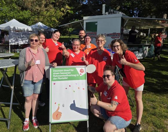Zum 1. Mai 2025 wurden in ganz Deutschland rote Nelken verteilt. Auch von den Floristinnen und Floristen selbst, die in der IG BAU organisiert sind. In Dortmund, Paderborn ...