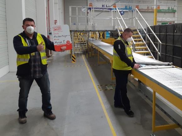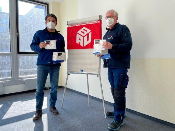 Die Betriebsräte und Vertrauensleute der Firma SPIE wurden gestern (1. März) mit zahlreichen FFP2-Masken der Gewerkschaft IG BAU überrascht.
