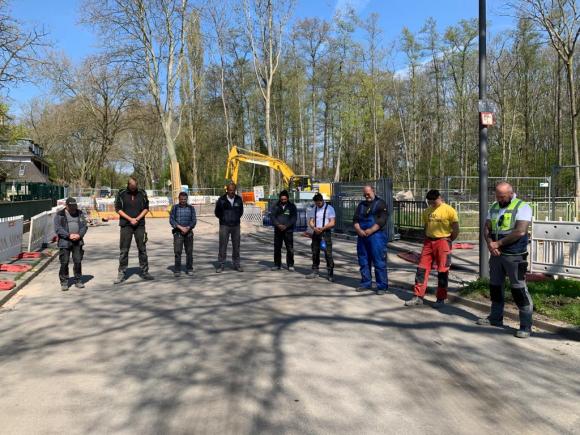 Anlässlich des Workers' Memorial Day hielten Beschäftigte auf Baustellen oder in Reinigungsobjekten um 12 Uhr für eine Minute inne, um der bei der Arbeit verletzten oder ve...