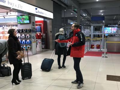 Sie verteilten Info-Briefe an die Geschäfte und Flugblätter an die Passant_innen. Am späten Vormittag und in der Mittagszeit setzen sie ihre Aktion im "Centro", einem Einkaufzentrum m Oberhausen, fort. Auch dort verteilten sie Info-Briefe an die Einzelhändler_innen. Mittags ließen sie in der Schlemmermeile des Centro ein Banner herab und verteilten mit Ehrenamtlichen gemeinsam Flugblätter an die Kundinnen und Kunden, die den Aktivist_innen mit großer Sympathie und Zustimmung begegneten.